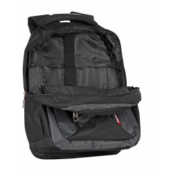 Il est fabriqué en polyester de haute qualité en noir et gris avec une ligne rouge. Le dos, la poignée et les bretelles sont rembourrés pour plus de confort, ainsi que l'un des compartiments intérieurs où vous pouvez ranger votre ordinateur portable ou votre tablette en toute sécurité.