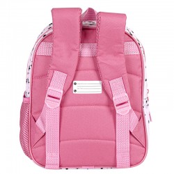 Inclus ; 1 sac à dos de crèche de couleur rose et blanc avec design de laigne Perona Doll en relief, grand espace interieur avec fermeture éclair, doublure interieur, poche lateral porte-bouteille en maille, bretelles matelassées réglables et respirantes, dossier matelassé, poignée de transport supérieure et carte d'identification personnelle.