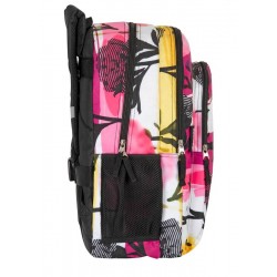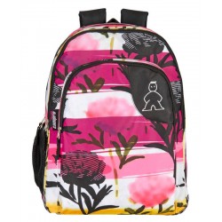 Comprend : 1 sac à dos scolaire double en violet, blanc et noir avec motif fleuri, logo brodé, système caché adaptable au trolley, poignées rembourrées, transportables et réglables, dossier rembourré pour plus de confort, doublure intérieure protectrice, bandes réfléchissantes sur les bretelles, dragonne sur le dessus, double espace intérieur avec fermeture à glissière, poche frontale avec fermeture à glissière et poche latérale en filet pour les bouteilles.