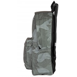 Comprend : 1 sac à dos junior vert avec motif camouflage, compartiment principal zippé, poche frontale zippée, bretelles rembourrées et réglables, dos rembourré, système de fixation du sac à dos sur le trolley, poignée supérieure et sangles réfléchissantes et 1 sac de transport plat avec fermeture zippée et tirette.